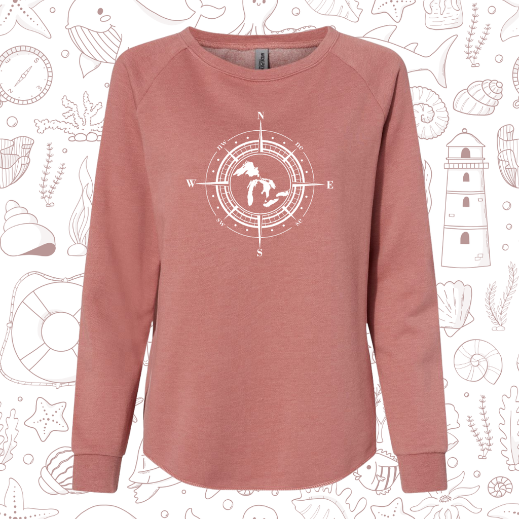 Show off your Great Lakes pride in style with our new ladies wave wash crew neck sweatshirts! So soft and comfy & perfect to wear with leggings or your favorite jeans!