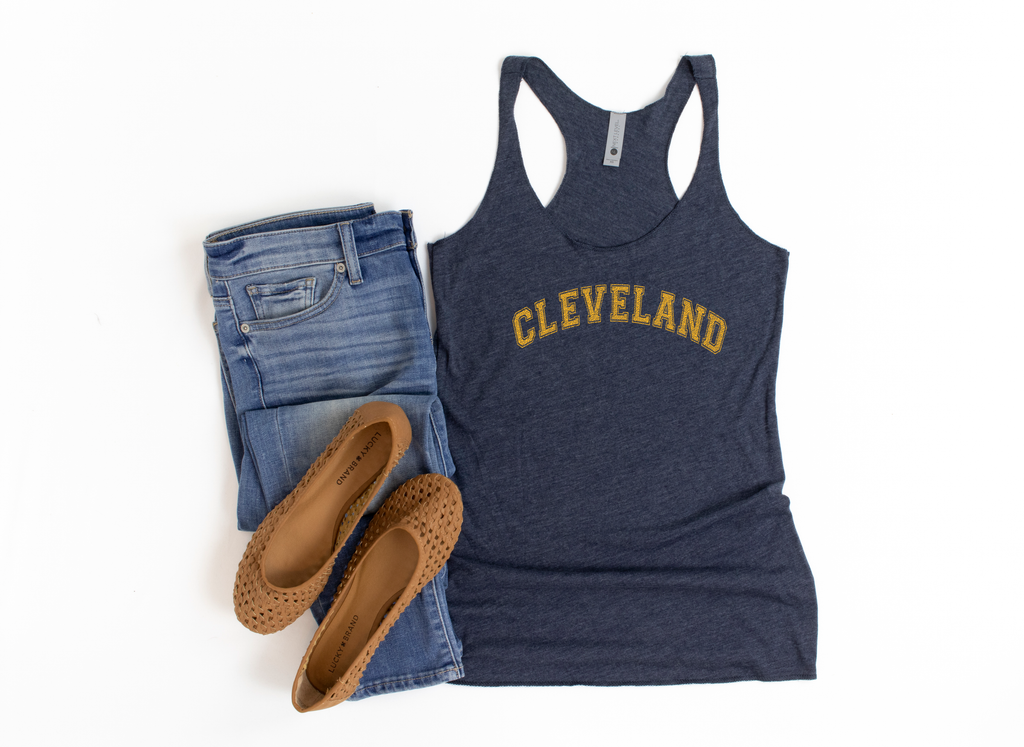 Show your love for Cleveland with this super soft vintage ladies flowy tank. Available in Wine, Grey or navy.