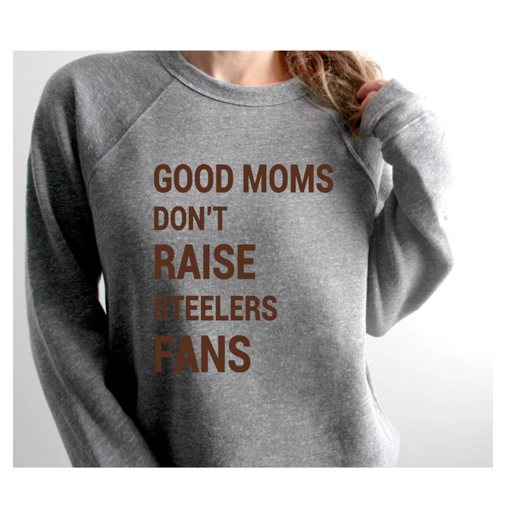 Display your love for Cleveland in our Good Moms Don't Raise Steeler Fans sweatshirt.