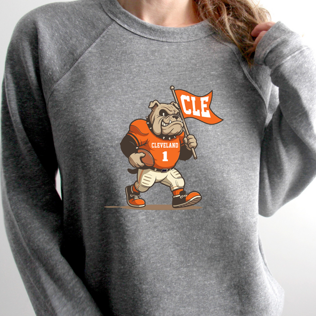 Show off your Cleveland Football pride with our Cleveland Dawg fleece crewneck. Spun from plush sponge fleece fabric, this remarkably soft unisex pullover crewneck sweatshirt lends itself to daily wear and year-round layering. Featuring ribbed cuffs and waistband, a crew neck, and fashion-forward fleece fabrication.