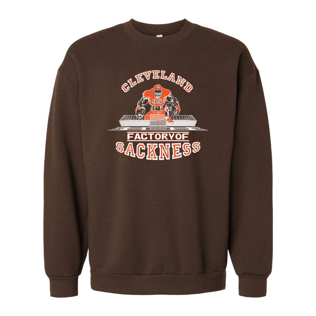 Display your love for Cleveland in our Factory of Sackness Crewneck sweatshirt.