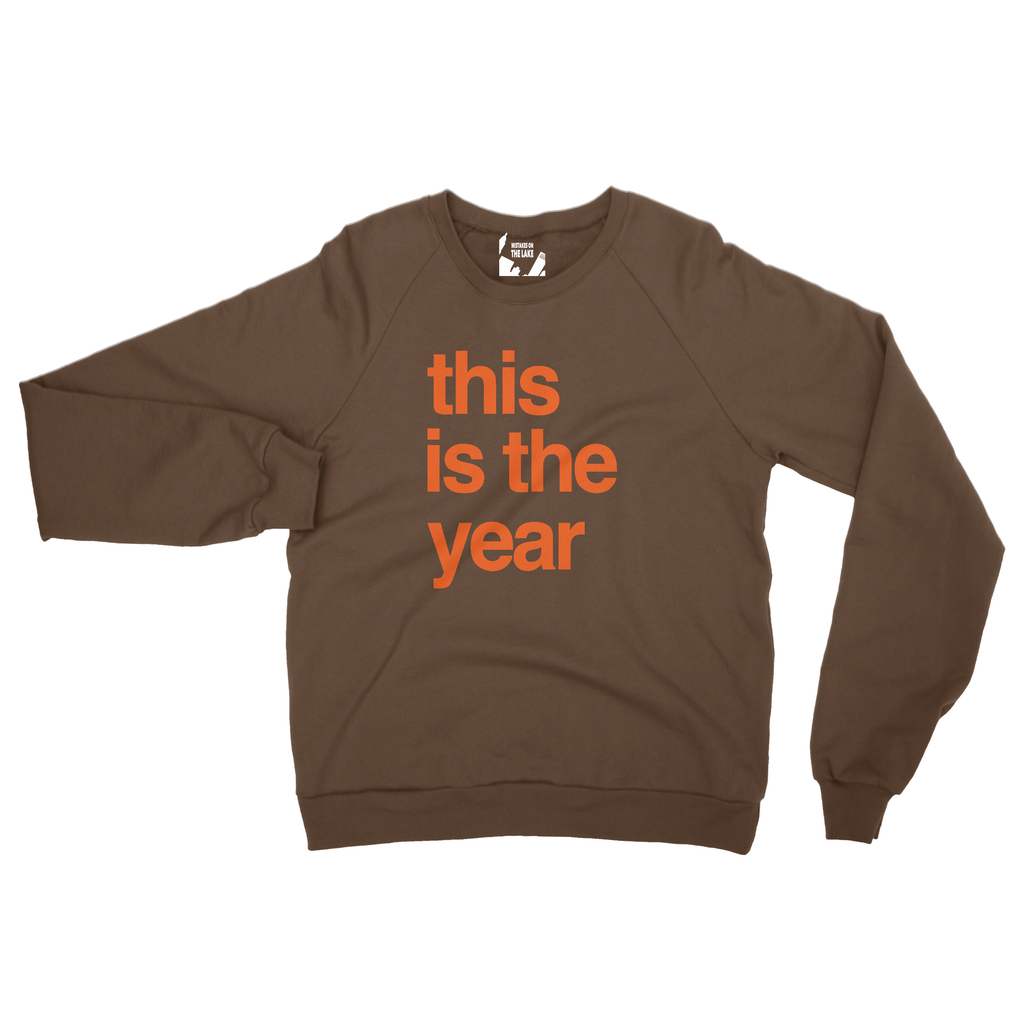 Brown This is the Year crewneck sweatshirt. It doesn't matter what year it is, Cleveland fans always have hope.