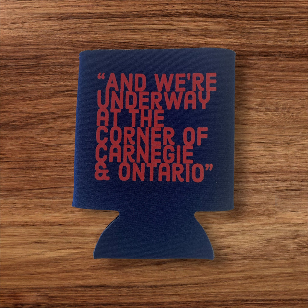We're Underway at the Corner of Carnegie & Ontario Blue Koozie - Mistakes on the Lake