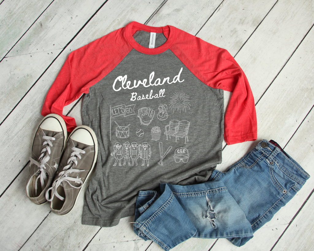 Cleveland Baseball Doodle - 3/4 Raglan Tee